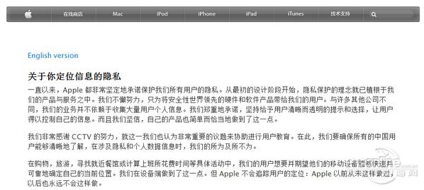 蘋(píng)果針對央視的質(zhì)疑發(fā)表聲明