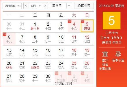2015清明節放假安排